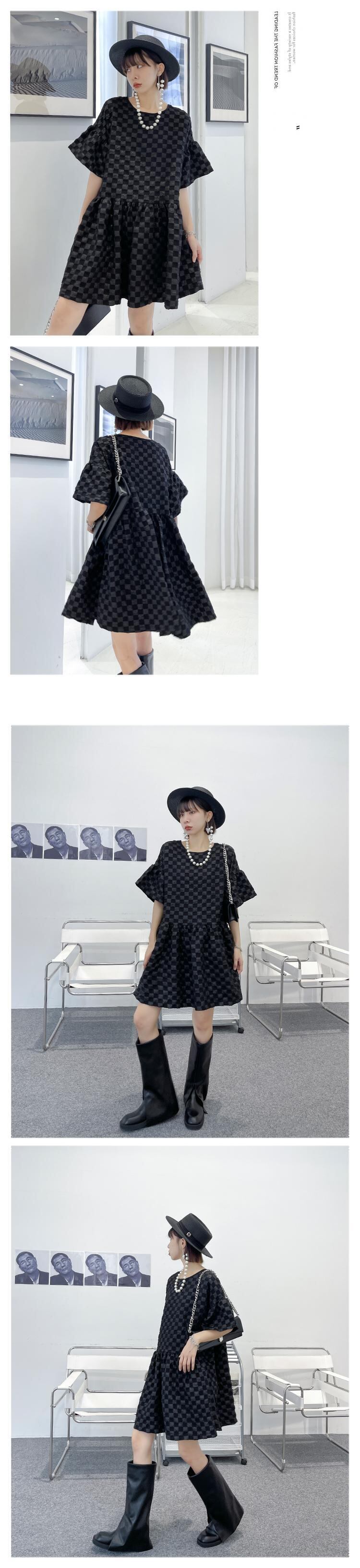 ブラックドレス サマー薄手スカート ルーズウェスト格子柄ショート 夏物 ラブタオタオダレンハウス74607979108