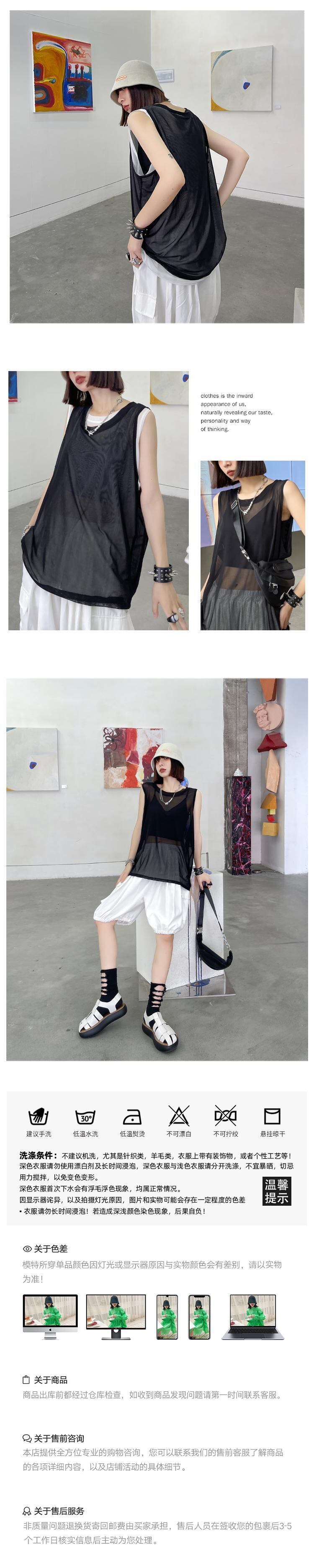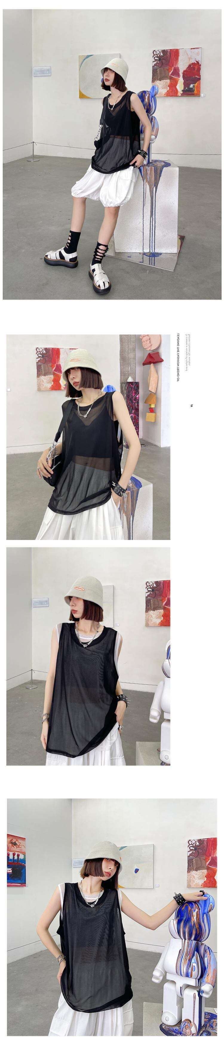 ブラックメッシュノースリーブTシャツ レディースサマールーズ薄手ブラウス 夏物 ラブタオタオダレンハウス22868299077