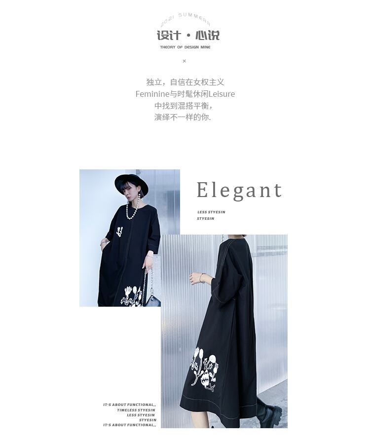 ドレス オータムルーズ薄手プリント柄スリーブスカート 秋物 ラブタオタオダレンハウス55925658749