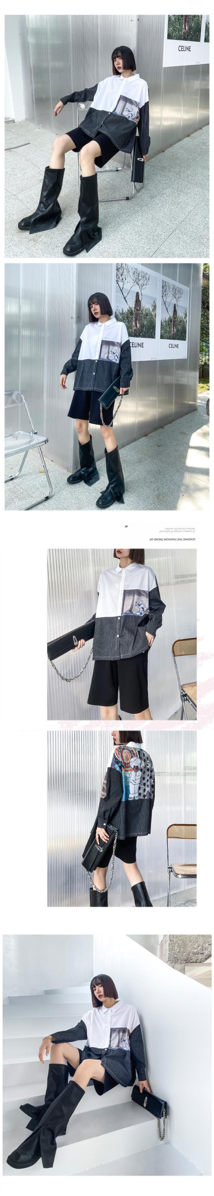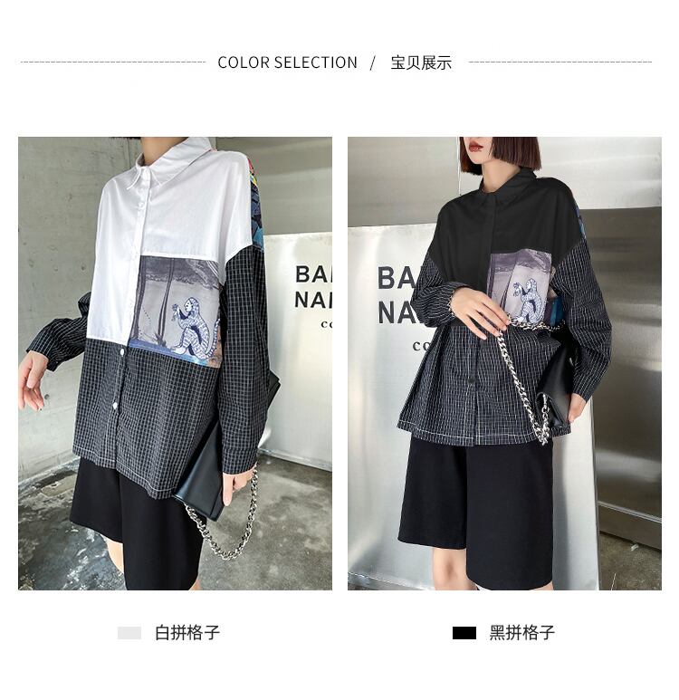 シャツ スタイルオータムプリント格子柄トップス ロング 秋物 ラブタオタオダレンハウス17613149803