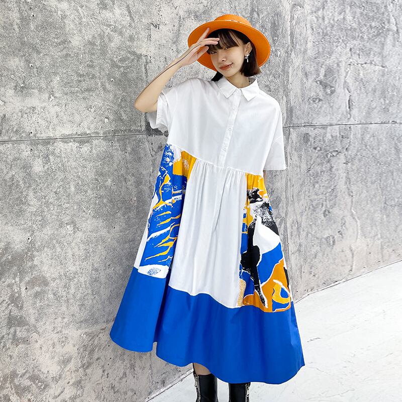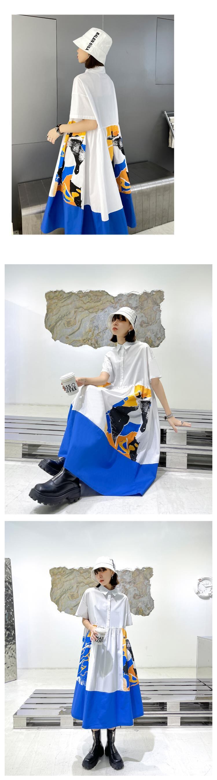 ホワイトドレス サマールーズ薄手シャツ スカート カジュアル 夏物 ステッチ ラブタオタオダレンハウス61512633358