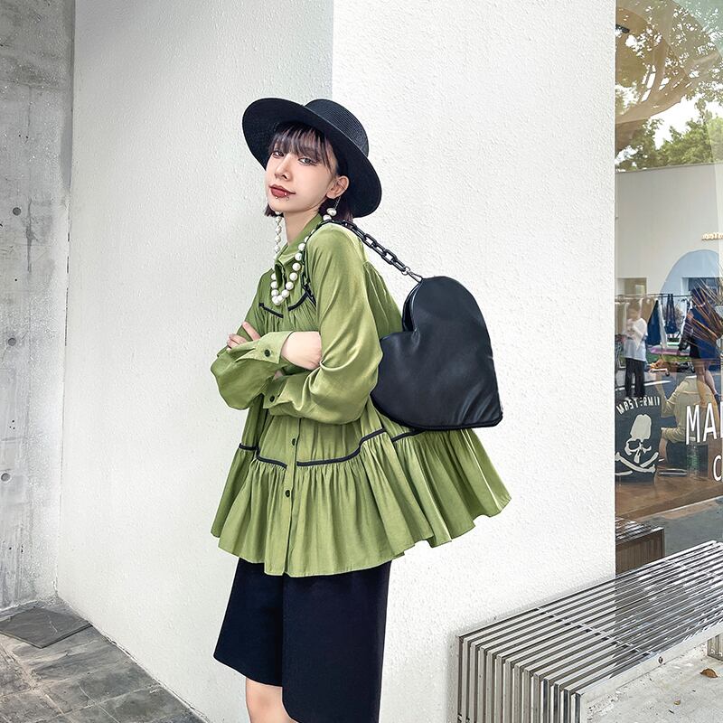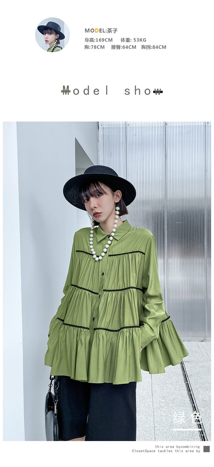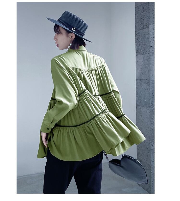 シャツ オータムトップス グリーンルーズ薄手 ロング 秋物 ラブタオタオダレンハウス16551511163