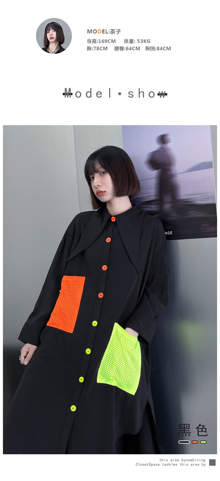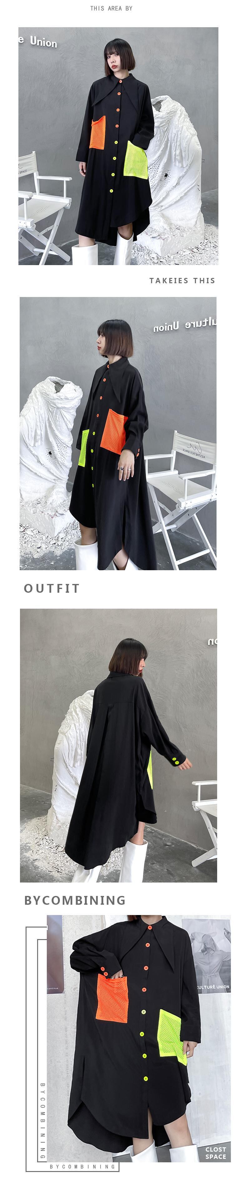 オータムシャツ ブラックルーズスリム薄手 ロング 秋物 ラブタオタオダレンハウス58566471102
