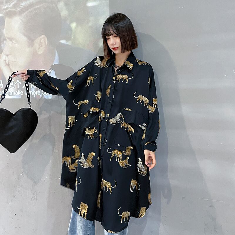 シャツ レディースオータムルーズ薄手スタイルFlowerデザイン ロング 秋物 フラワーデザイン ラブタオタオダレンハウス89922120359